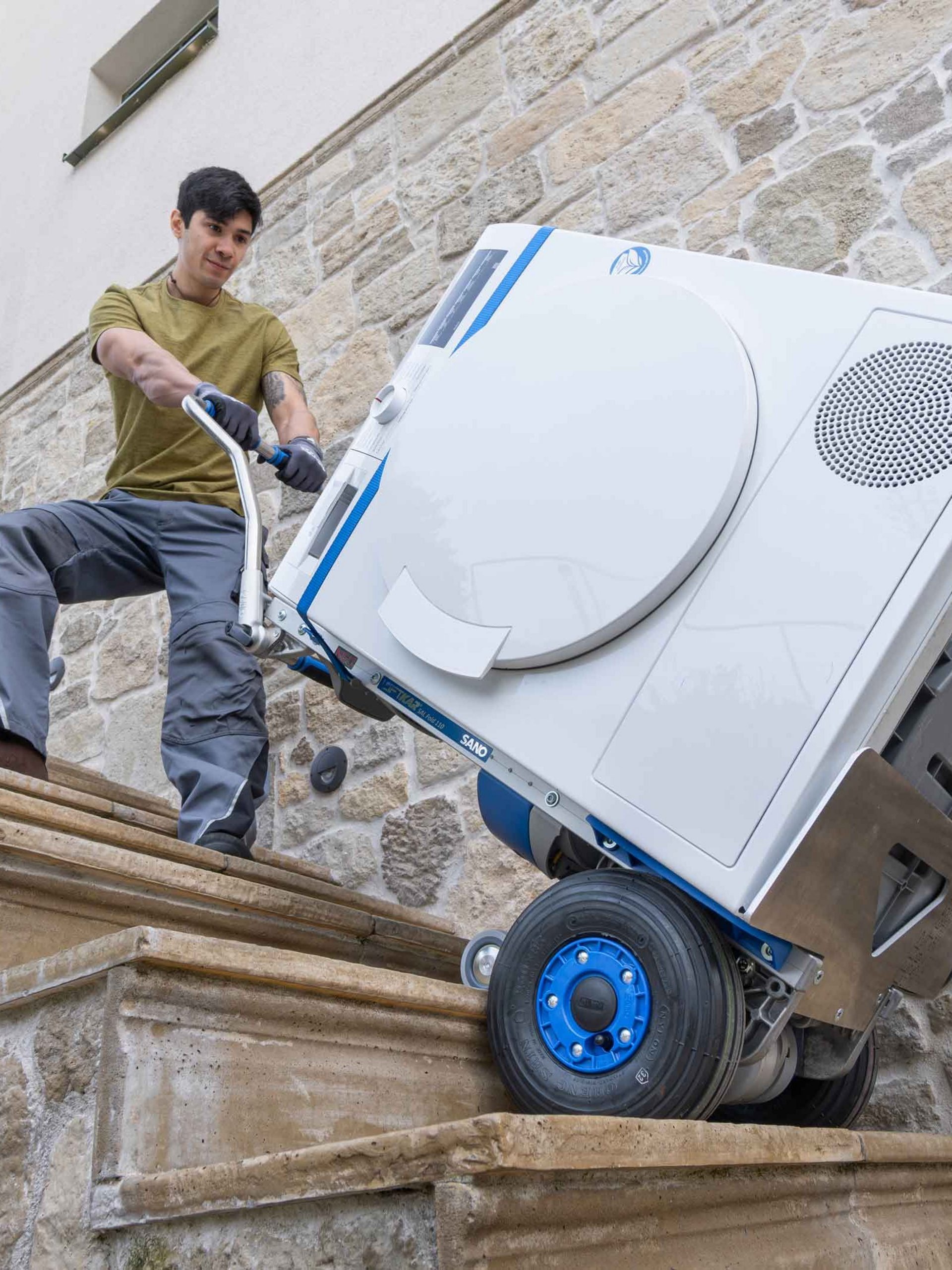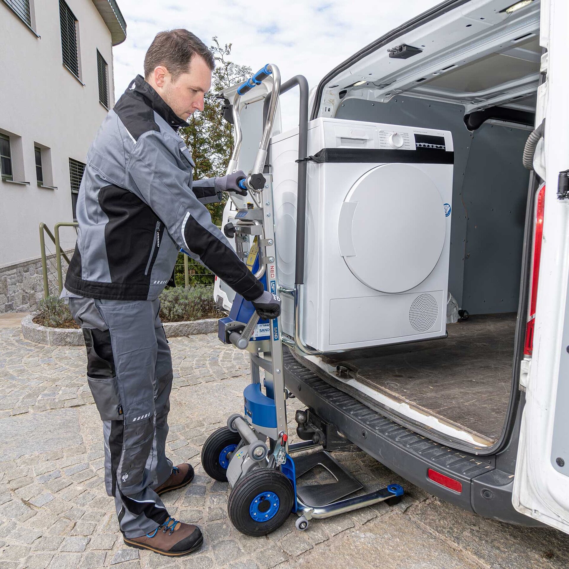 Unsere LiftKar Cargo Line, mit Modellen wie NEO LiftKar SAL, LiftKar SAL, NEO LiftKar HD, LiftKar HD, LiftKar MTK, UniKar und ModulKar, revolutioniert den Transport von Weißgut in der Industrie. Egal, ob es sich um Waschmaschinen, Kühlschränke, Geschirrspüler oder andere schwere Haushaltsgeräte handelt, unsere Treppensteiger bewältigen Lasten von 110 kg bis zu beeindruckenden 360 kg.