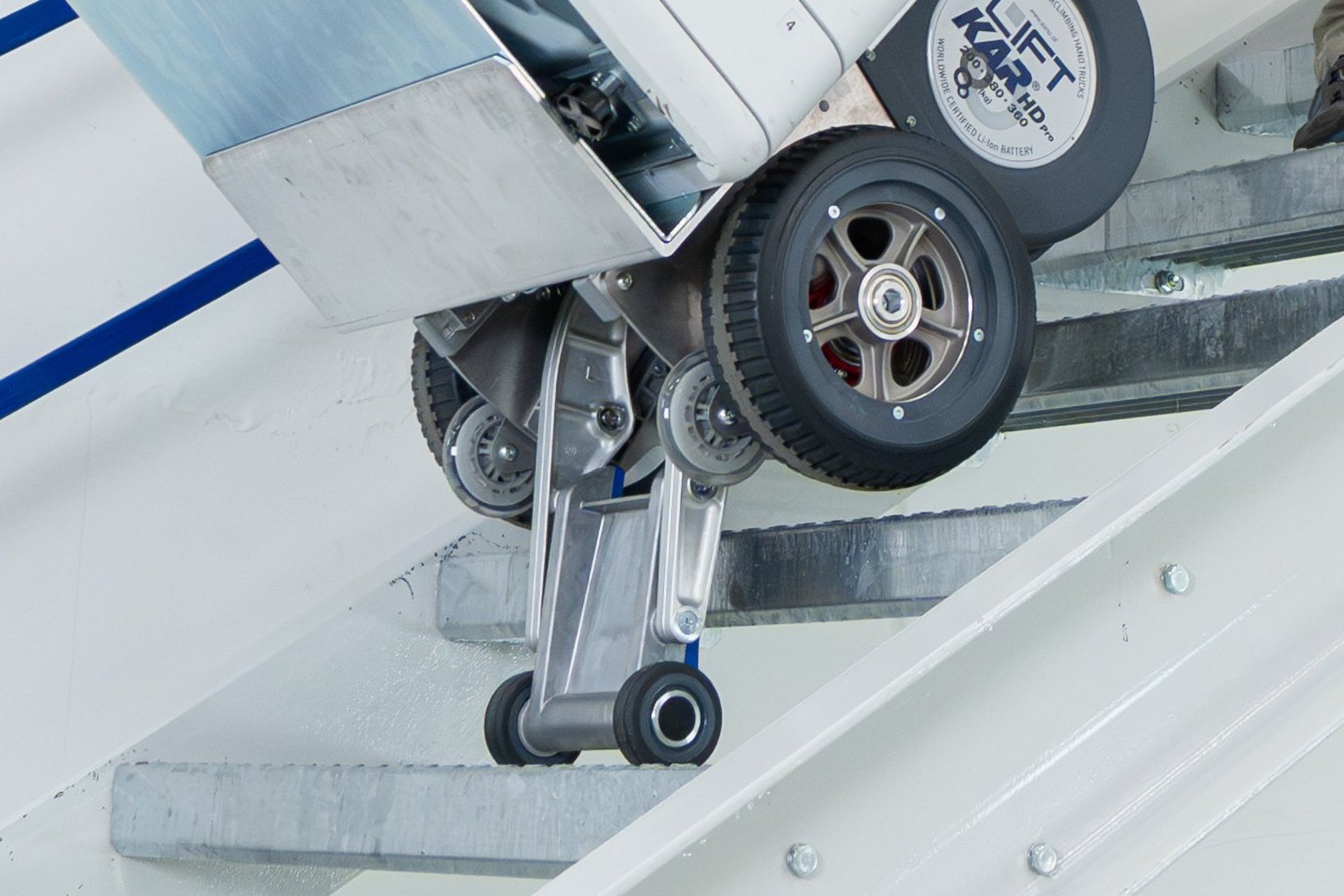 Das Herzstück des LiftKar HD Pro ist die perfekt ausbalancierte Steigeinheit mit zwei Steiggeschwindigkeiten und einem Ein- und Mehrstufenmodus. Dank des innovativen Stufenkantenbremssystems gewährleisten wir höchste Sicherheit bei jedem Einsatz.