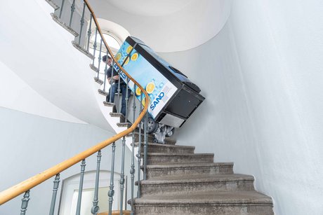 Wer kennt das nicht? Da trägt man schnell Kopierpapier oder Schränke einzeln über die Treppe, anstatt die Sache gleich professionell zu erledigen: Nämlich mit dem LiftKar SAL Pro. Mit dem elektrischen Treppensteiger von SANO geht es im Endeffekt viel schneller sowie einfacher und der Rücken wird geschont.